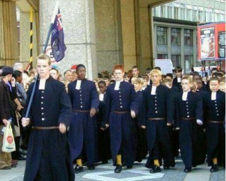 歐洲的校服仍然維持著它一直以為低調和貴族的傳統(tǒng),被譽為最正統(tǒng)的校服,沿用了多年的皇室制服款式。英國校服款式經典、簡潔大方,中學生必須穿著正統(tǒng)西式校服,男生為正統(tǒng)西裝、正規(guī)皮鞋、需要佩戴領帶,女生也是統(tǒng)一西式正統(tǒng)服裝、正規(guī)女式皮鞋、必須佩戴領花,不論是?;?、帽徽,無一不顯示著英國人特有的風度和氣質。也不知是歐洲的學生更嚴肅還是校方更強硬,他們的態(tài)度似乎是“學生就要穿得像個學生的樣子”。他們對校服的重視程度也不輸給日本,認為校服是培養(yǎng)學生紀律意識最直接的手段。