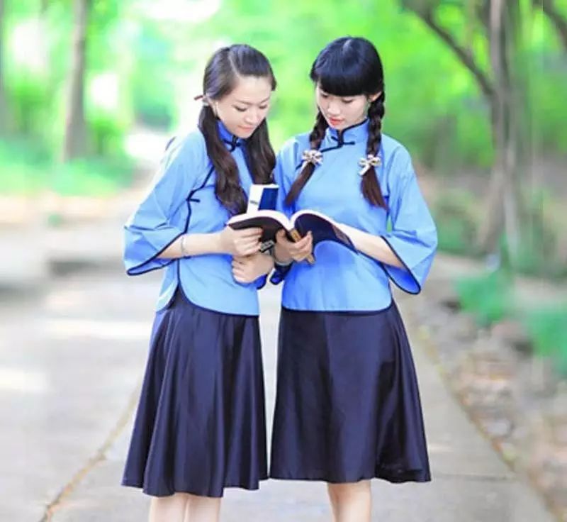 我國真正意義上的現(xiàn)代校服源于1900年之后的軍校,以學校分發(fā)衣物為標志。新文化運動后,女性地位崛起,女校制服掀起了“文明新裝”風潮,即上為淺藍短襖,下是黑色長裙,白色紗襪,圓口布鞋;而男生是中山裝樣式,這一時期的經典校服式樣既有民族感,又融入了流行的西洋元素,成為我國服飾文化史中的一道風景。新中國成立后,并沒有特別明顯的校服出現(xiàn),受當時社會經濟影響,白襯衫、藍褲子成了學生們的“標配”。上世紀80年代后,校服重新回歸學校,絕大多數(shù)將其默認為是運動服,大而肥的款式沒少讓花季少男少女們嘆息。21世紀后,部分地區(qū)校服的設計開始效仿日本或者歐美國家,款式和配色也有了較大改觀。