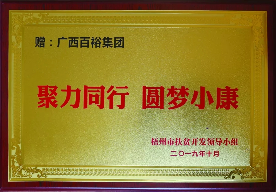 為進(jìn)一步動員各民營企業(yè)、社會組織、社會各界愛心人士積極參與到扶貧攻堅的壯麗事業(yè)中來,形成“人人皆愿為、人人皆可為、人人皆能為”的社會扶貧參與機(jī)制,集中社會各方力量高質(zhì)量打贏打好脫貧攻堅戰(zhàn),在10月17日我國第6個“扶貧日”來臨之際,10月16日晚梧州市2019年國家扶貧日“提高脫貧質(zhì)量 鞏固脫貧成果”主題公益晚會上,百裕集團(tuán)多年來積極助力脫貧攻堅戰(zhàn)役和社會公益活動工作成績顯著得到表彰。