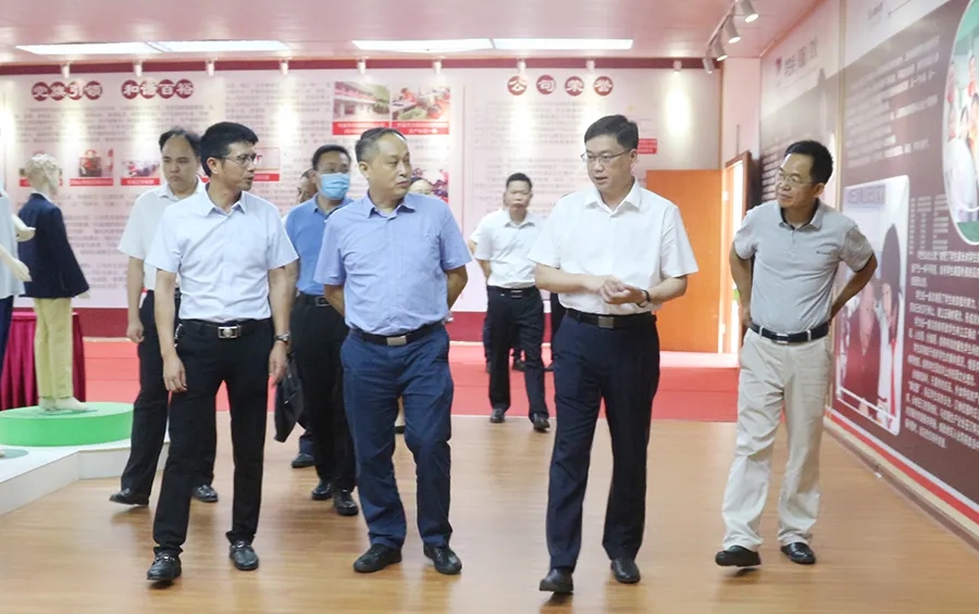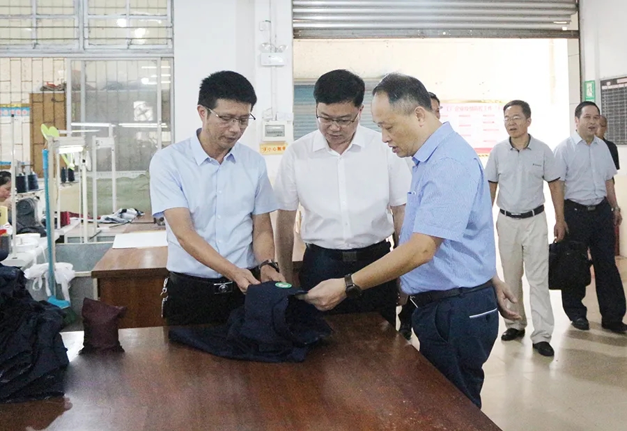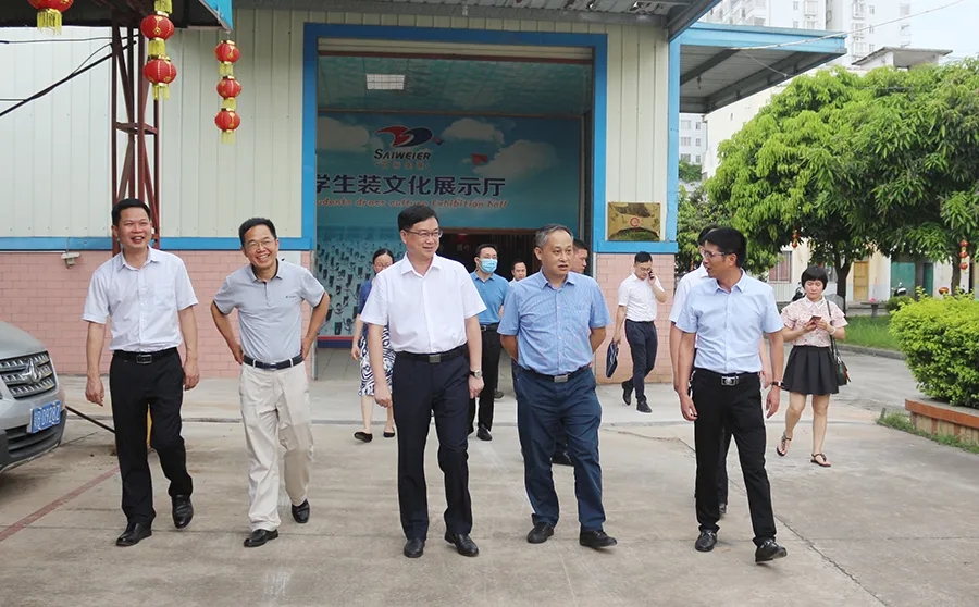 梁藝光副廳長一行人先后參觀了校服文化展示中心、服裝生產(chǎn)車間,期間曾晏來總經(jīng)理向梁藝光副廳長詳細(xì)介紹了公司疫情防控工作的落實情況,及復(fù)工復(fù)產(chǎn)、公司經(jīng)營發(fā)展的情況,表示在疫情期間一定繼續(xù)做好防控措施,保障員工健康安全,確保企業(yè)生產(chǎn)經(jīng)營有序開展。