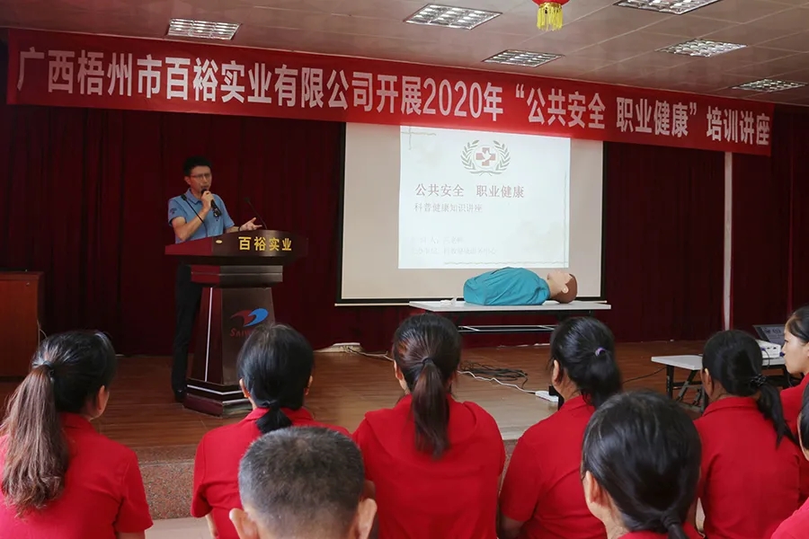 講座上,百裕實業(yè)總經(jīng)理曾晏來表示:“公共安全職業(yè)健康專題講座,是“安全生產(chǎn)月”系列活動之一。目前,公司積極開展形式多樣、內容豐富的 “安全生產(chǎn)月”系列活動,希望通過這次活動,進一步增強員工們的自我保護、現(xiàn)場救護和自我保健能力 ,最大限度降低突發(fā)性傷害事件造成的危害,養(yǎng)成良好的健康生活習慣,提高員工職業(yè)健康意識,增強企業(yè)職業(yè)健康管理。本次培訓是比較規(guī)范的一些救護方法,請同事們認真聽,細心觀察老師的操作方法。”