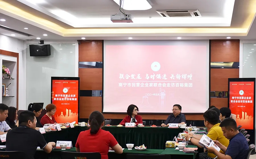 為加深對會員單位的了解,進一步加強會員企業(yè)之間的溝通聯系,5月20日,南寧市民營企業(yè)家聯合會執(zhí)行會長兼工會主席黃小萍率會員企業(yè)家到我公司開展走訪交流工作。