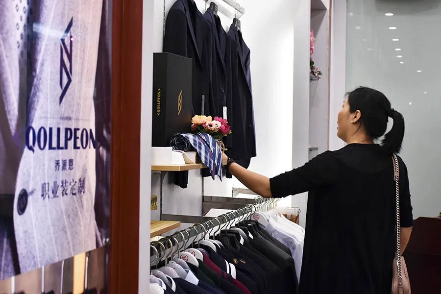 在產品展示廳,企業(yè)家們對我公司百裕校園時代校園服飾、喬派恩職業(yè)裝等品牌服飾表示濃厚興趣,并對產品的設計、工藝等方面表示贊賞。