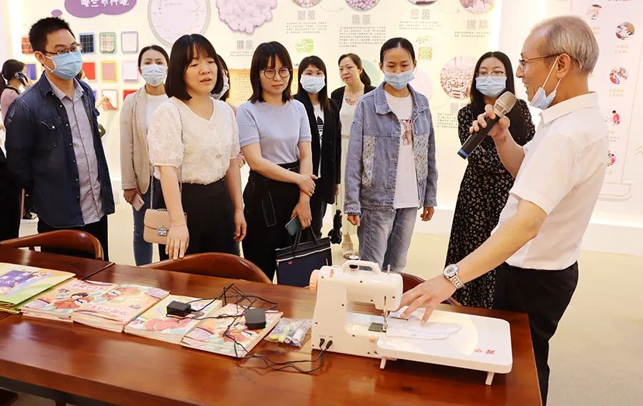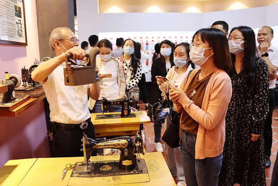 在文化館內(nèi),學(xué)員們學(xué)習(xí)學(xué)生服飾歷史文化,近距離了解不同時代的服飾生產(chǎn)機(jī)器,感受服飾的魅力及人類智慧的文明發(fā)展。