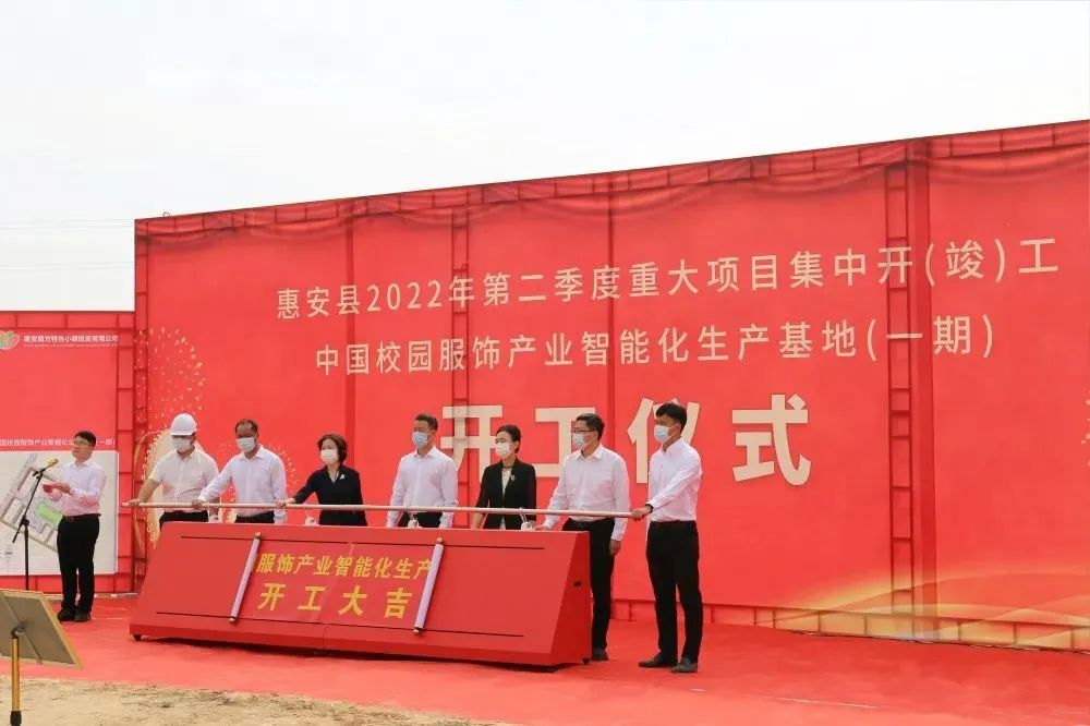 4月13日上午9時(shí)許,城南工業(yè)區(qū)(中國(guó)校園服飾產(chǎn)業(yè)基地)內(nèi),惠安縣隆重舉行中國(guó)校園服飾產(chǎn)業(yè)智能化生產(chǎn)基地一期項(xiàng)目開工儀式。中共惠安縣委書記王春雷,縣政協(xié)主席許貞麗,縣委副書記黃麗瓊,縣委常委、常務(wù)副縣長(zhǎng)蔡旭萌、螺陽(yáng)鎮(zhèn)黨委王海演書記、鎮(zhèn)長(zhǎng)林少杰和項(xiàng)目業(yè)主代表辛景文等出席開工儀式并共同為項(xiàng)目開工推桿啟動(dòng)。副縣長(zhǎng)郭惠卿主持開工儀式并介紹項(xiàng)目情況。