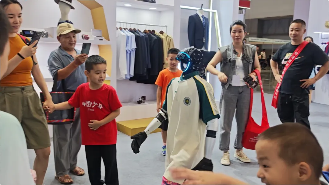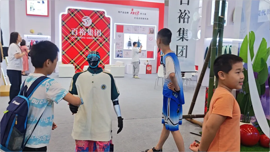 展會期間,還有智能機器人身著百裕集團校服,在展館內(nèi)巡游并與觀眾互動。這一創(chuàng)新場景,成為了全場矚目的焦點。當(dāng)傳統(tǒng)校服文化與前沿AI機器人技術(shù)相遇,碰撞出的不僅是視覺上的新奇體驗,更是對“科技賦能教育,裝備服務(wù)未來”理念的具象化表達。