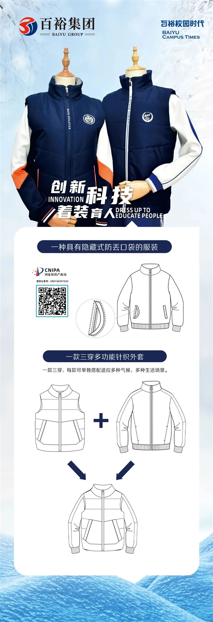 時代發(fā)展帶來的價值觀和審美觀的改變,是百裕集團發(fā)展品牌的動力,未來,百裕的隊伍堅持將中華民族文化、國際時尚與校園文化相互結(jié)合。
