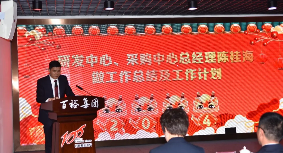 2024年2月19--20日,百裕集團(tuán)在福建惠安召開(kāi)2023年終總結(jié)暨2024年工作會(huì)議,營(yíng)銷(xiāo)中心人員、研發(fā)中心部門(mén)負(fù)責(zé)人、財(cái)務(wù)部門(mén)負(fù)責(zé)人、各生產(chǎn)部及分廠廠長(zhǎng)、負(fù)責(zé)人;百裕事業(yè)合伙人等齊聚一堂,共同回顧過(guò)去一年的工作成果、表彰先進(jìn)、總結(jié)經(jīng)驗(yàn),交流分享,為公司的未來(lái)發(fā)展描繪藍(lán)圖,并明確了2024年的工作目標(biāo)和發(fā)展戰(zhàn)略,會(huì)議由營(yíng)銷(xiāo)中心市場(chǎng)總監(jiān)曾凱蘭主持。