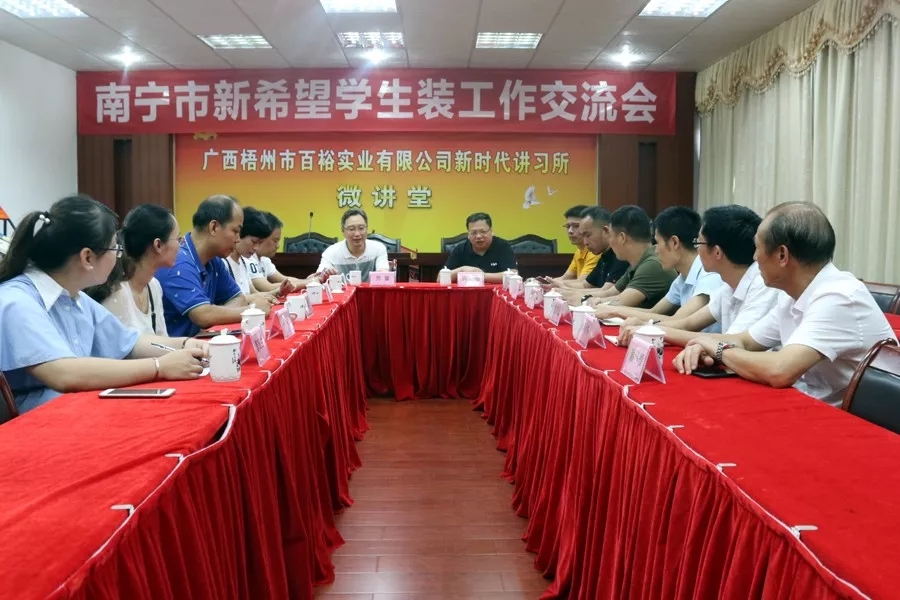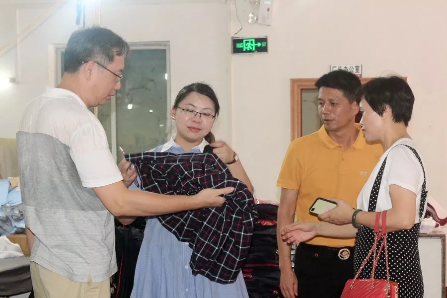 7月4日,南寧市新希望教育用品有限責(zé)任公司總經(jīng)理勞豪一行4人到百裕實業(yè)生產(chǎn)基地,了解學(xué)生裝庫存情況以及監(jiān)督產(chǎn)品質(zhì)量。百裕集團董事長許曲煌、生產(chǎn)中心總經(jīng)理曾晏來等相關(guān)公司人員陪同考察。