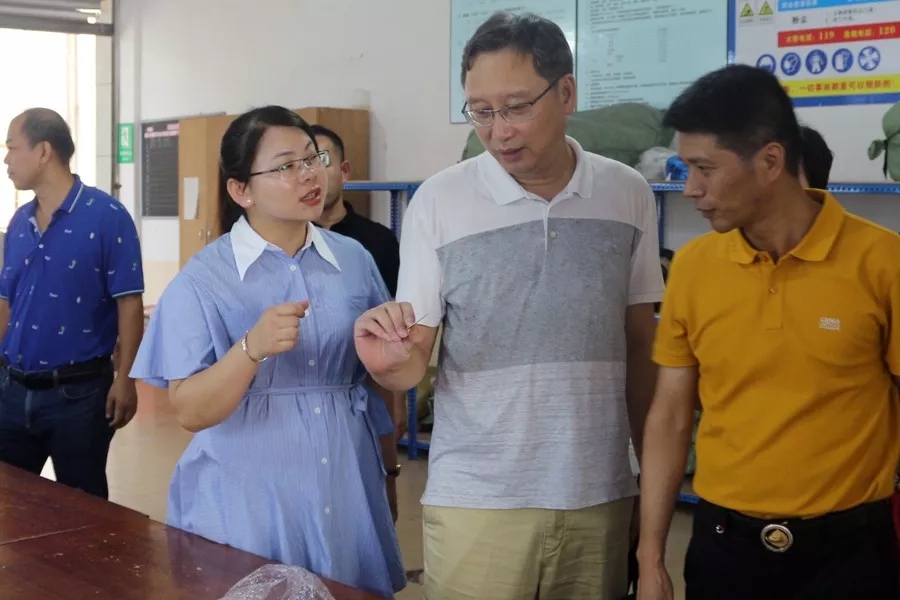 新希望公司總經(jīng)理勞豪帶領(lǐng)相關(guān)人員來到岑溪生產(chǎn)基地的車間,對產(chǎn)品的各項生產(chǎn)流程,管理進一步了解,特別是質(zhì)量把控等環(huán)節(jié)。原材料的來源等渠道,成品倉庫的管理等工作做了詳細的詢問及指導(dǎo)。