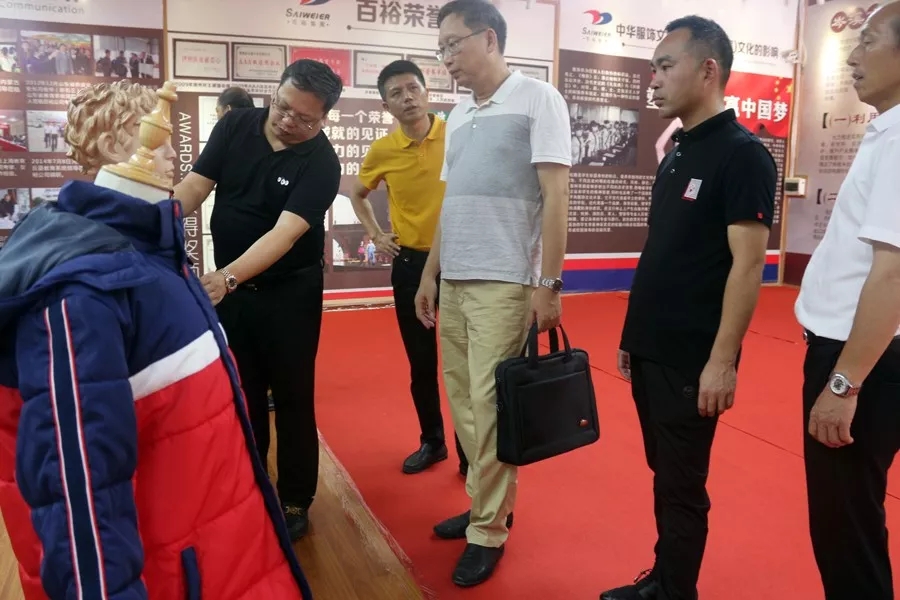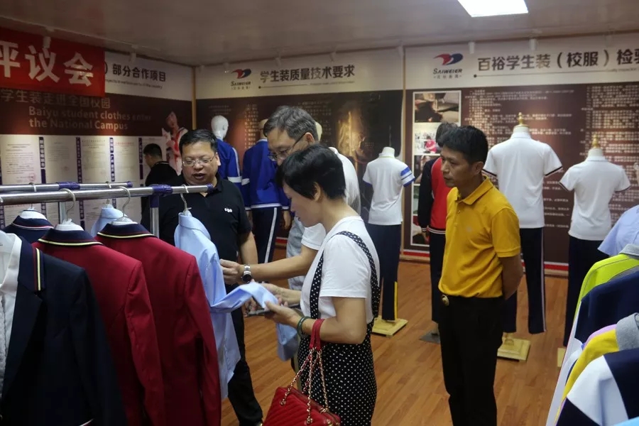 隨即新希望公司參觀了“全國學(xué)生裝文化展示中心”,對展示廳里面的各類型服裝進行指導(dǎo)。并對百裕引進的先進的面料、輔料等表示認可。