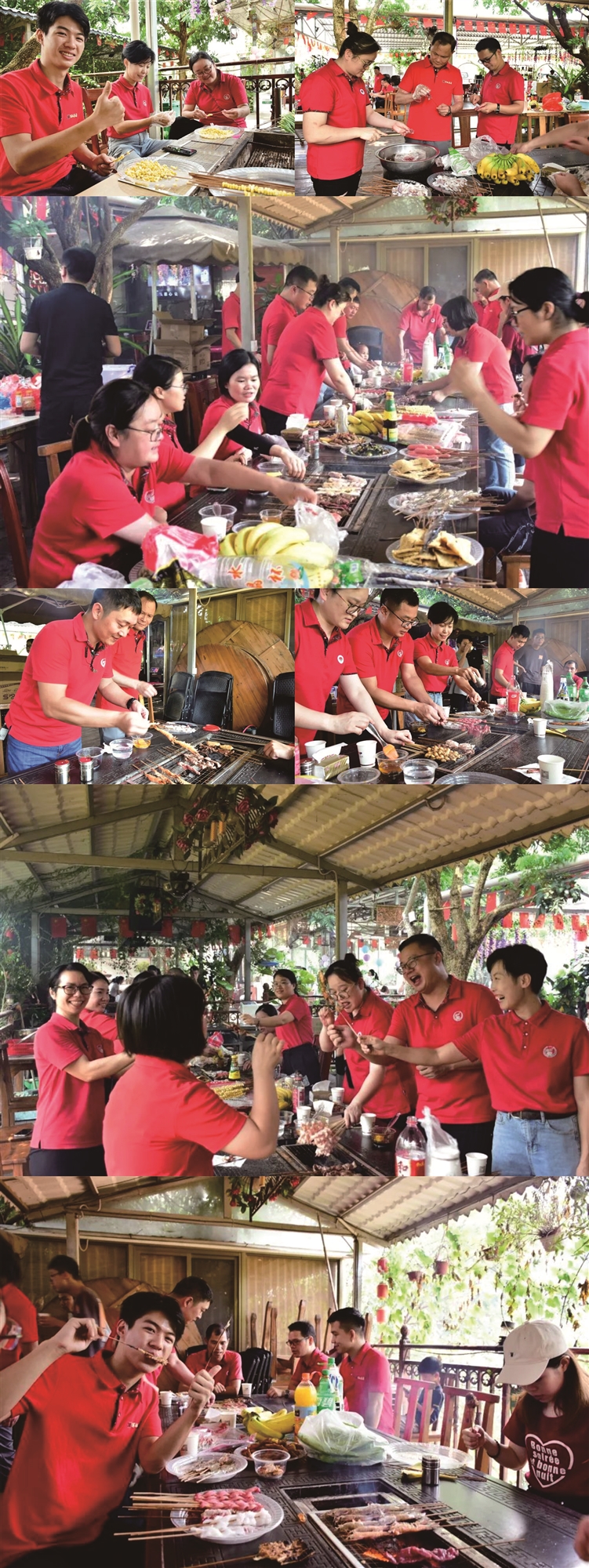 活動在農莊開展,公司提前給員工準備了酸辣的鳳爪,爽脆的青瓜,涼拌木耳等,都引誘著同事們饑腸轆轆的胃,讓人垂涎。在燒烤過程中員工們互相配合洗菜、串肉、生火、加炭,場面好不熱鬧。大家都拿出了“十八般武藝”,充分展示出自己的動手能力和美食鑒賞能力,在制作和分享美味的過程中,每個人笑容滿面,洋溢著喜悅的氣氛。