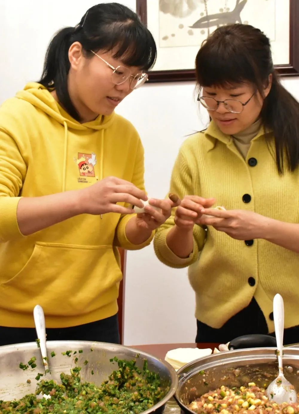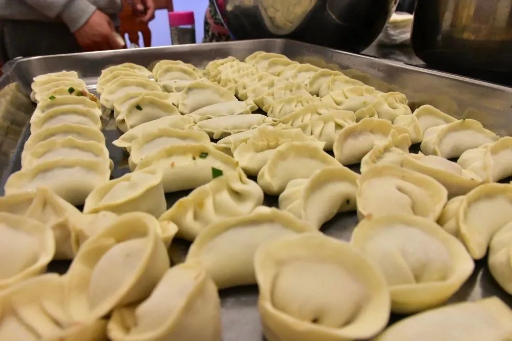 新春伊始,大家齊聚餐廳各顯神通,放餡、捏皮,完整連貫。一會(huì)兒功夫,一盤盤大小勻稱、緊實(shí)飽滿、形狀美觀的餃子整齊地?cái)[上了臺(tái)面:月牙狀、元寶狀、柳葉狀等各式各樣的餃子組成了一桌餃子“全家?!?,堪比精美花朵百花齊放。