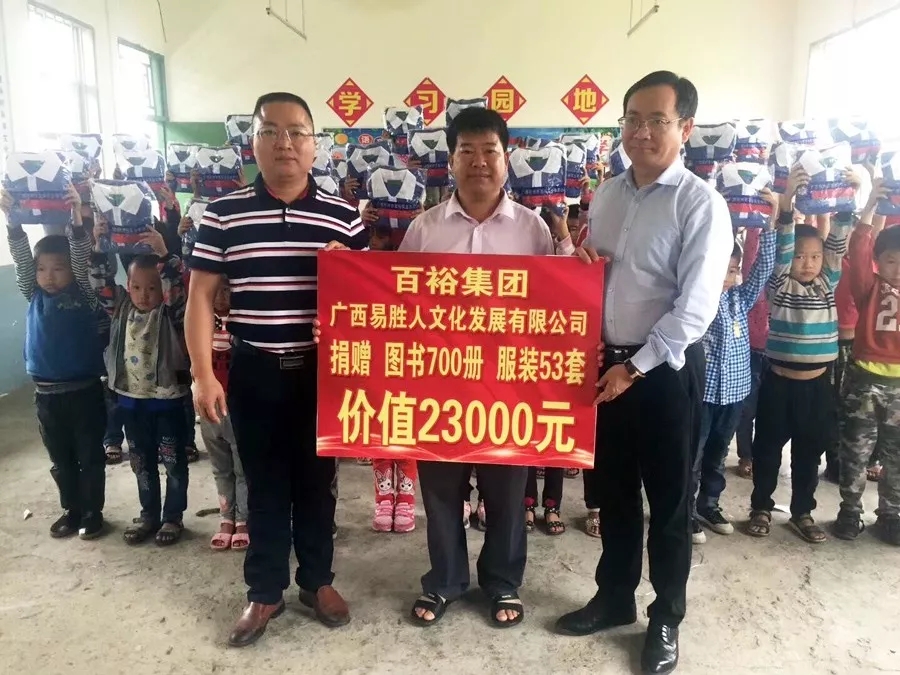 傳承愛(ài)心,愛(ài)不止步。百裕集團(tuán)公益團(tuán)隊(duì)同時(shí)還深入岑溪南渡鎮(zhèn)、都安縣下坳鎮(zhèn)、云南富源縣等地鄉(xiāng)鎮(zhèn)小學(xué),用愛(ài)心筑夢(mèng),為教育公益事業(yè)盡綿薄之力。
