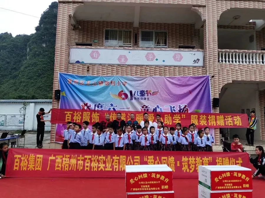 百裕集團(tuán)服務(wù)河池地區(qū)已有6年多,多年來(lái)開(kāi)展了一系列的捐贈(zèng)助學(xué)的公益活動(dòng)。時(shí)值六一兒童節(jié),百裕集團(tuán)不忘初心,兌現(xiàn)“為環(huán)江村屯學(xué)校捐贈(zèng)1106套愛(ài)心校服”承諾,并增加圖書等物資捐贈(zèng),在總經(jīng)理林志煌的帶領(lǐng)下,先后走進(jìn)環(huán)江縣10個(gè)鄉(xiāng)14個(gè)村級(jí)小學(xué),惠及1106名小朋友,為孩子們送上節(jié)日的祝福。